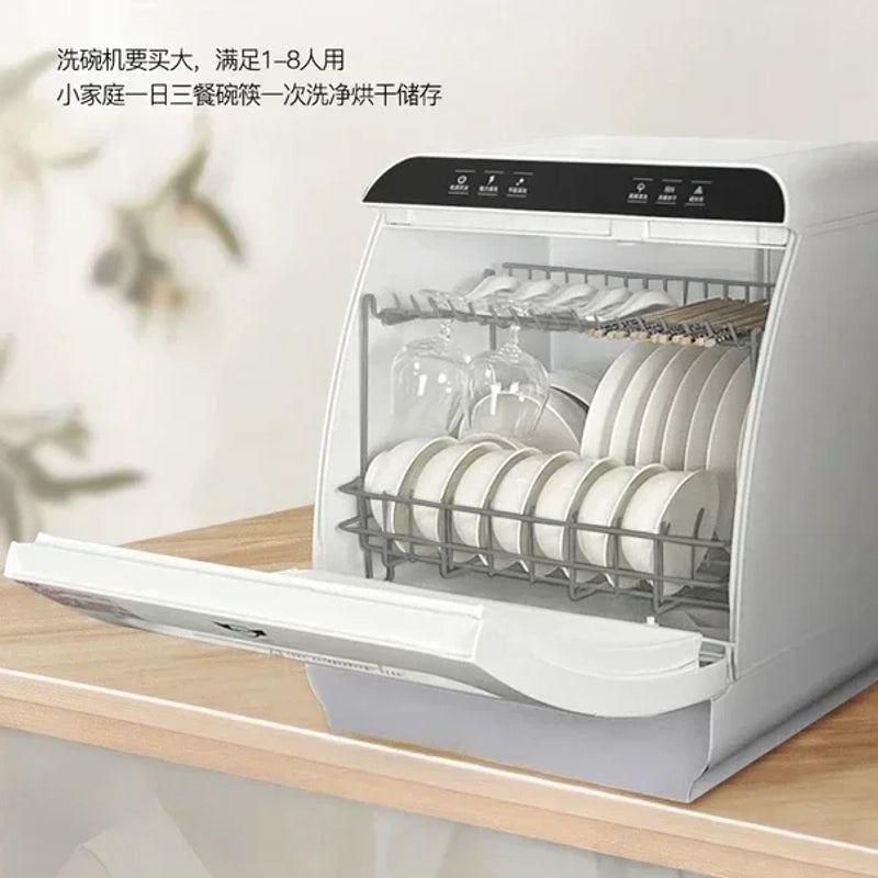 Small footprint, big impact. Despite its compact size, the Q8 handles dishes for up to 8 people, perfect for daily use or intimate gatherings.