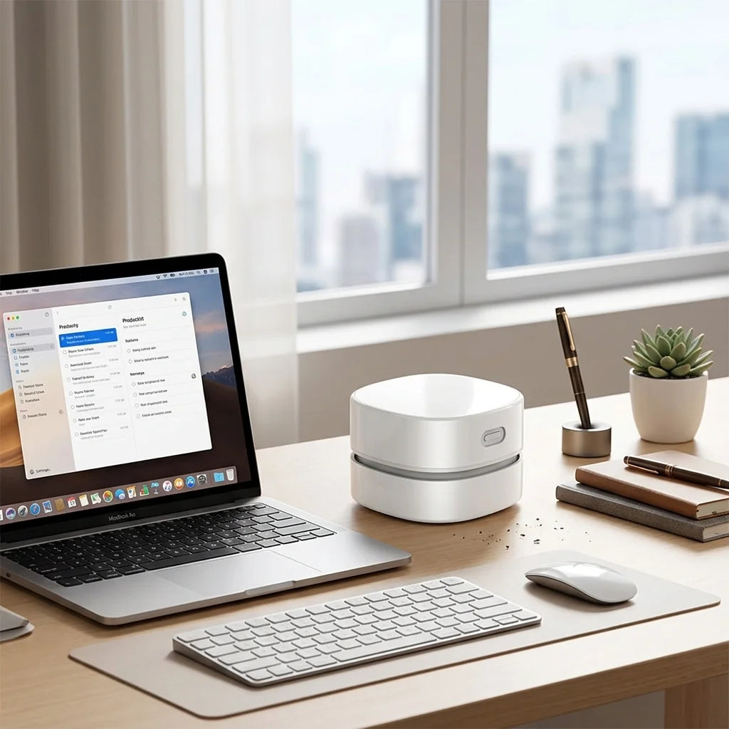 A cluttered desk leads to a cluttered mind. Our mini vacuum isn't just about tidiness; it's about reclaiming your mental space, ensuring your brilliant ideas have room to breathe. Experience the calm of a pristine environment.