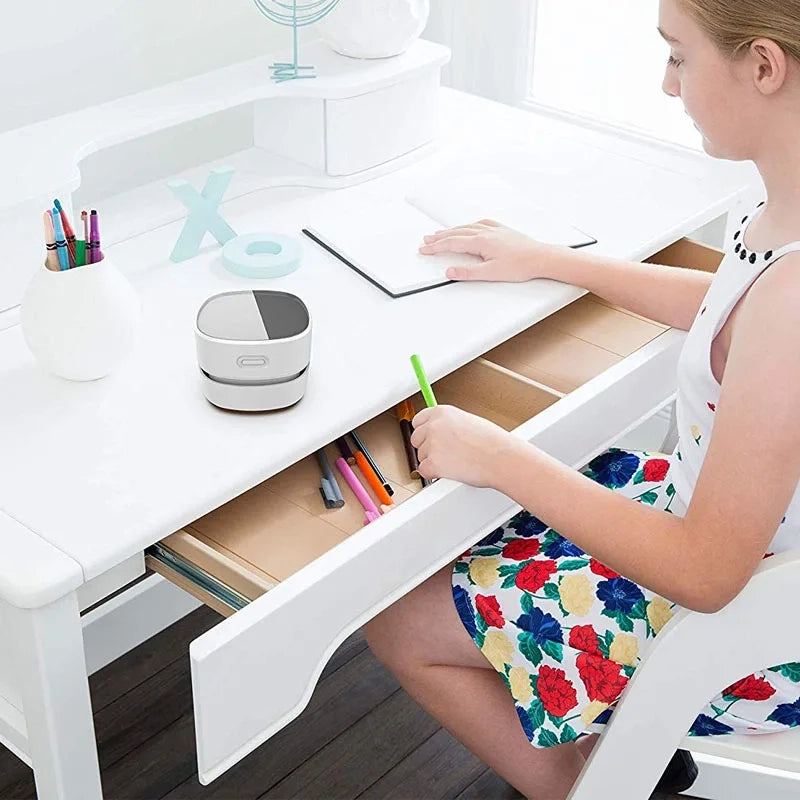 Absolutely! Don't let its mini size fool you. Our vacuum is engineered to tackle crumbs, dust, pencil shavings, and all those tiny bits that clutter your workspace. Say goodbye to mess, effortlessly!